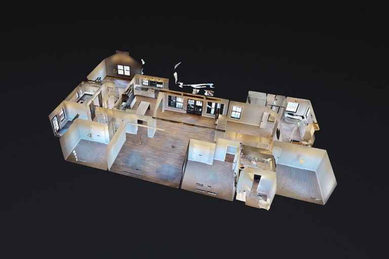 Built in Madill, Oklahoma, this custom home was designed to have an open floor plan with plenty of natural light. There are plenty of custom built-ins including a mudroom locker, sliding barn door, and exposed shelves in the kitchen. The vaulted ceilings with exposed wood beams, large fireplace, and lighter color palette allows this Oklahoma farmhouse to be modern, but yet also welcoming.